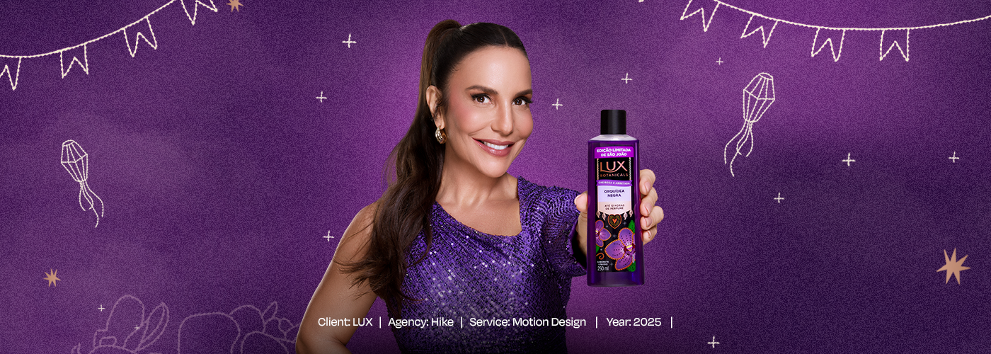 In this São João campaign by Lux Botanicals, with the iconic Ivete Sangalo, we were invited by Agência Hike to transform the visual coherence and illustrations into animation. The motion not only reinforced the aesthetics and cultural identity of the project, but was also essential to convey the energy of the scent. The strategic use of movement contributed significantly to the success and impact of the campaign.