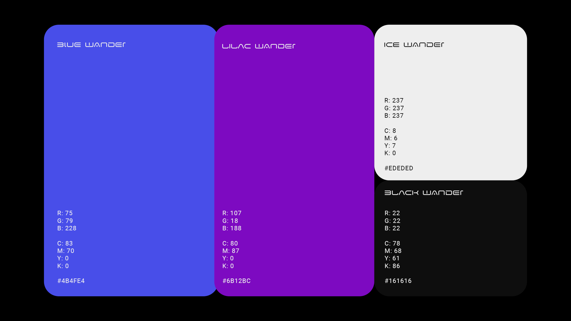 Black Wander: A timeless black that conveys sophistication and strength. It serves as the perfect basis for our visual identity.