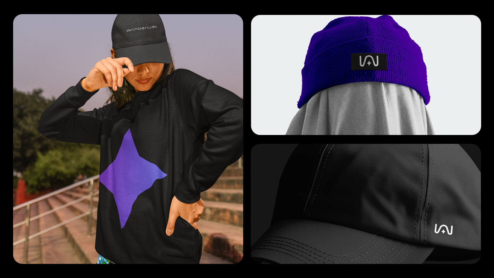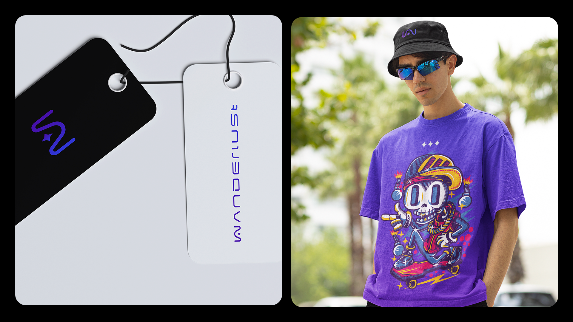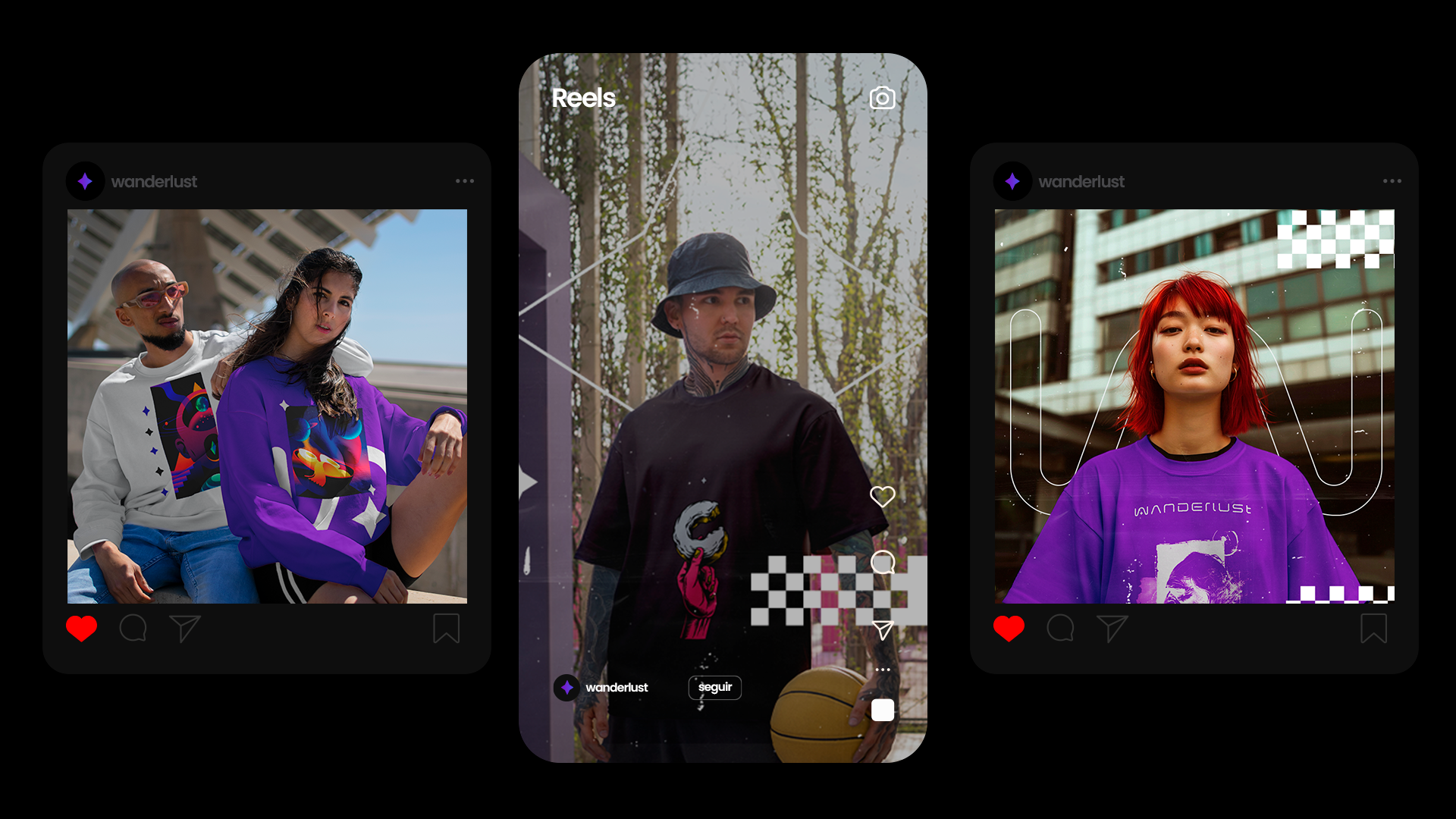 Wanderlust was designed to stand out in different media, reflecting the essence of our urban and futuristic style. Every brand element, from the typography to the color palette, is designed to create a striking, cohesive presence.